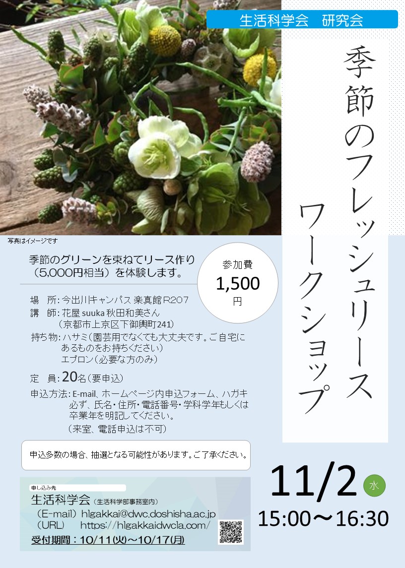 11月2日(水)に研究会「季節のフレッシュリース ワークショップ」が開催されました。